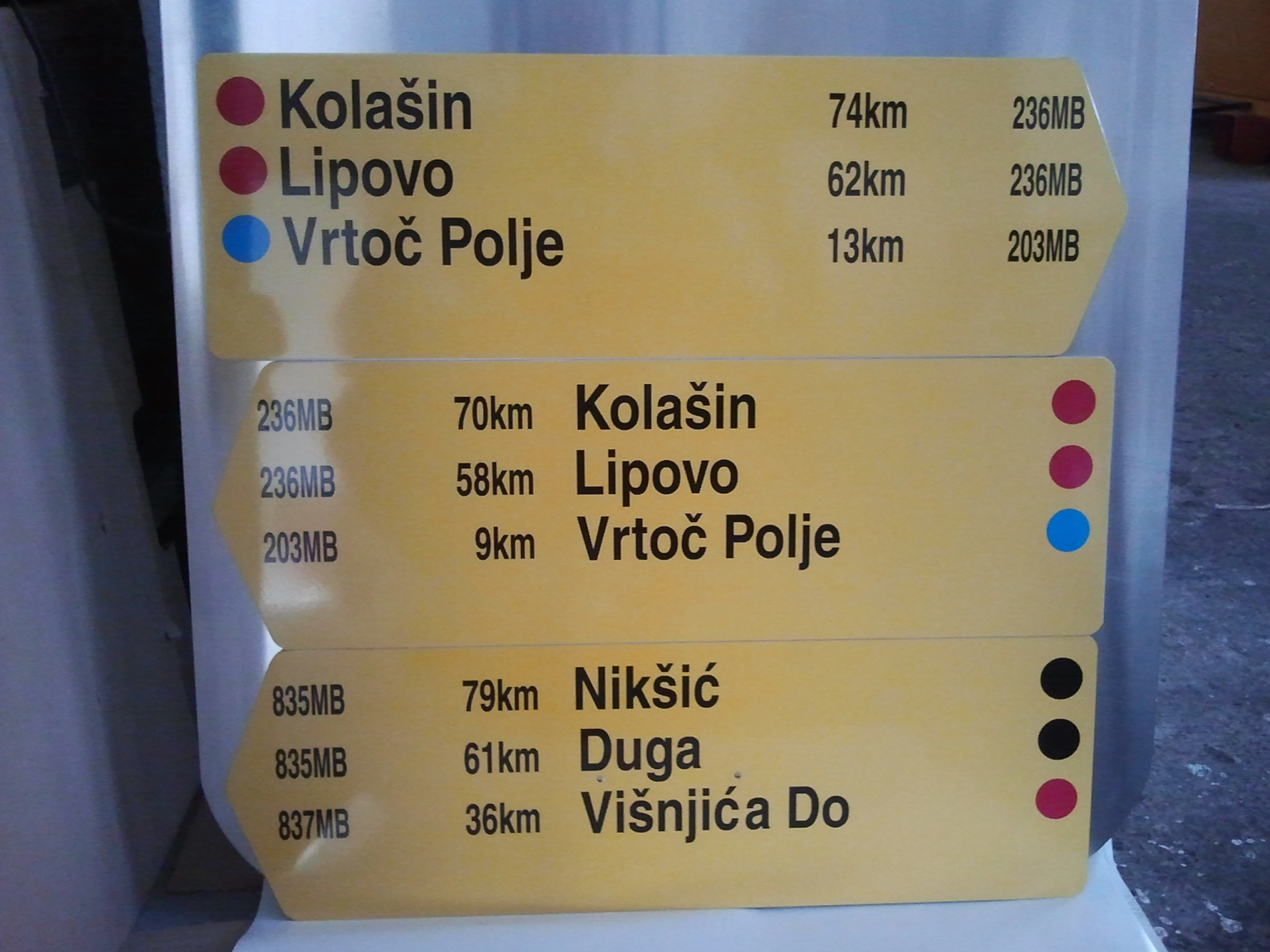 Veličine turističkog putokaznog znaka, u pravilu, su: 100x30cm.
